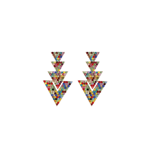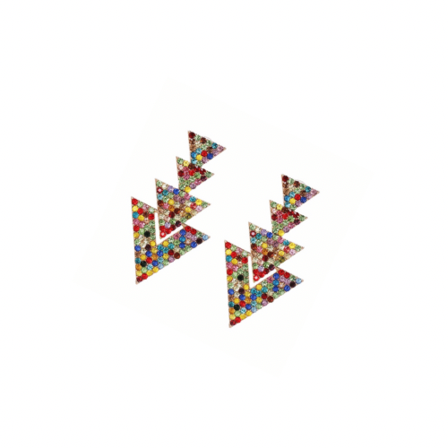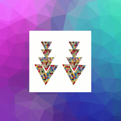 Fabulous Multicolored Gem Triangle Earrings. Medium Weight; Back Style Post; Add A Touch Of Glam To Your Outfit!
