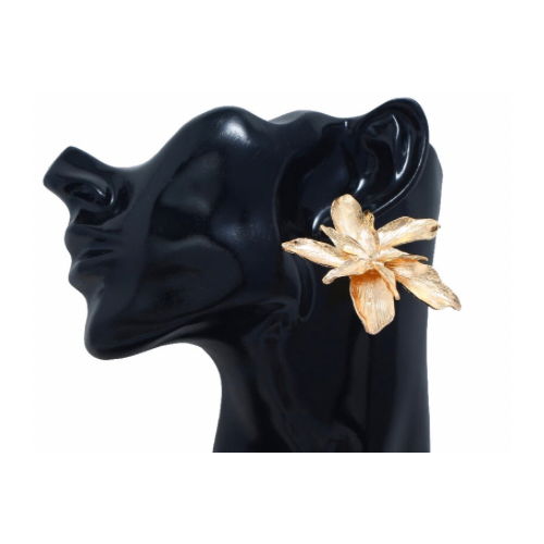 Beautiful Gold Flower Stud Earrings. Large Metal Flower Earring With Medium Weight! Stylish And Trendy!