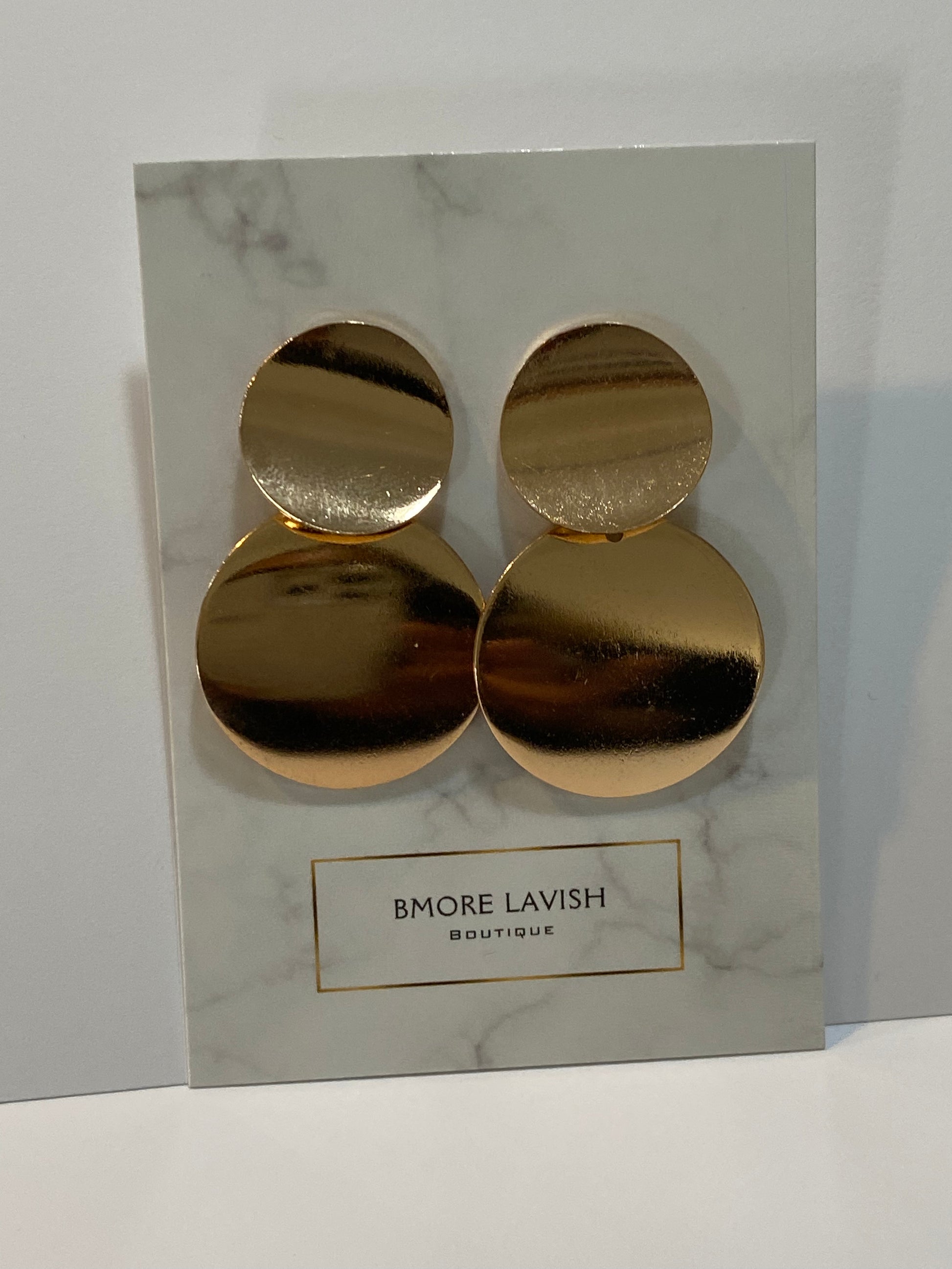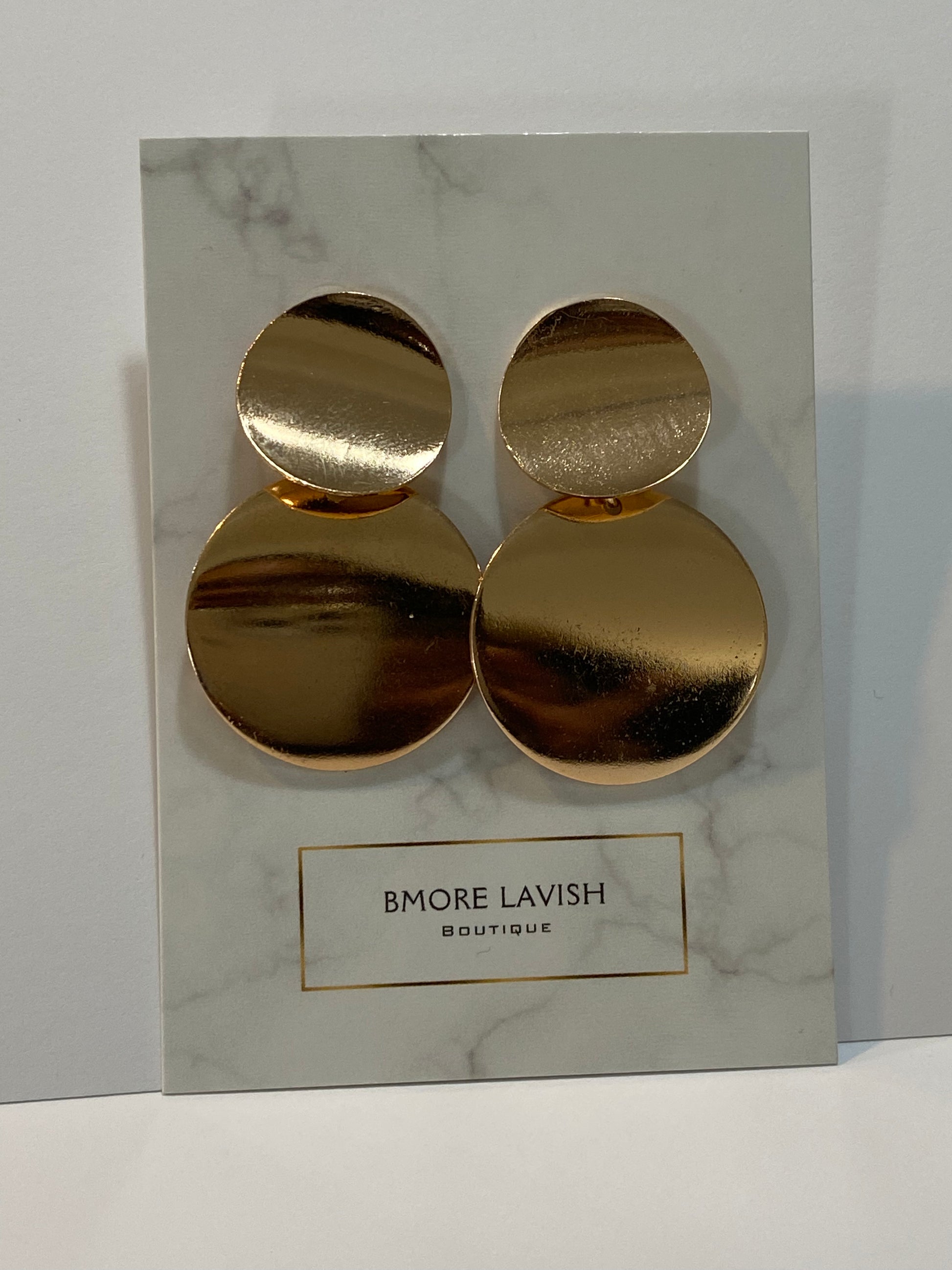 Beautiful Gold 2 Tier Round Drop Earrings. Lightweight Metal Circles Are Simple But Stunning! Wear Everyday Or Somewhere Special! These Stylish And Trendy Earrings Makes The Clique Every Time!
