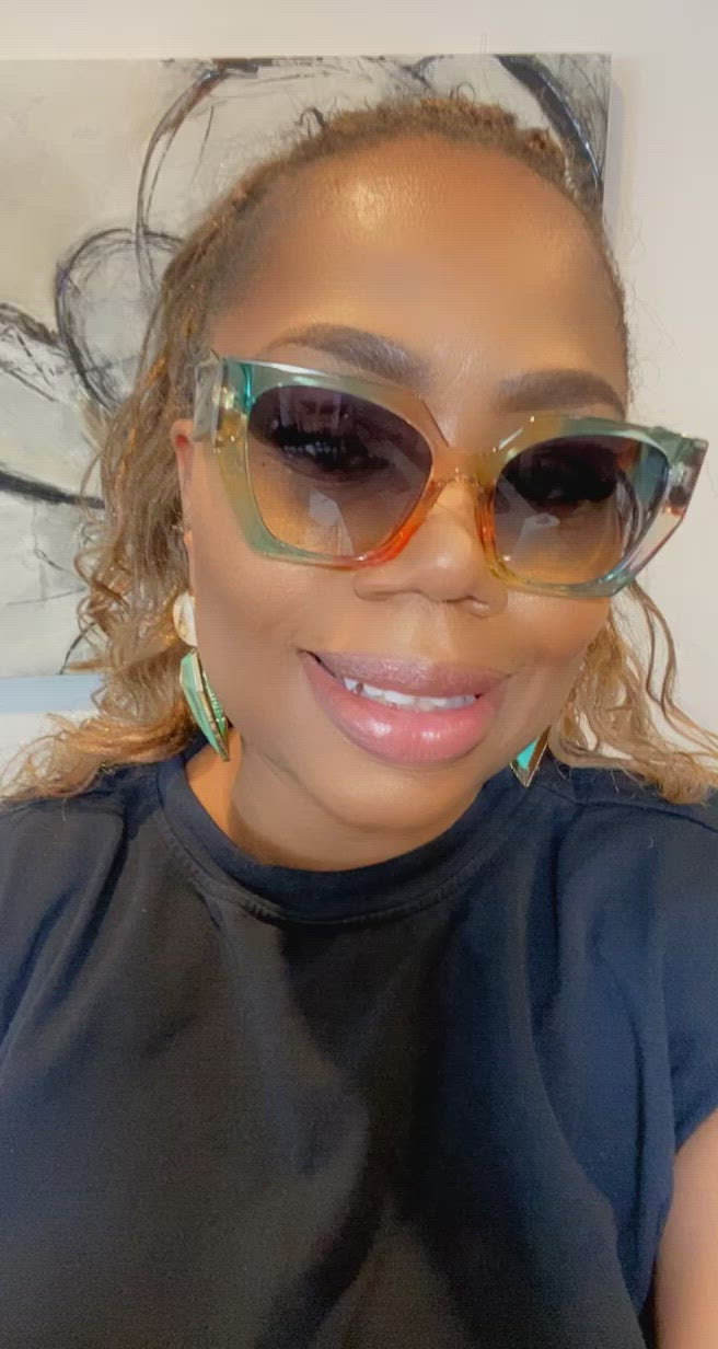 Beautiful Multicolored Plastic Frame Sunglasses! Retro Shaped Frames With Green Tinted Lenses!. These Shades Scream Vaxay! ASAP!!!
