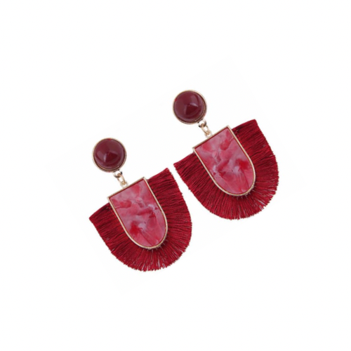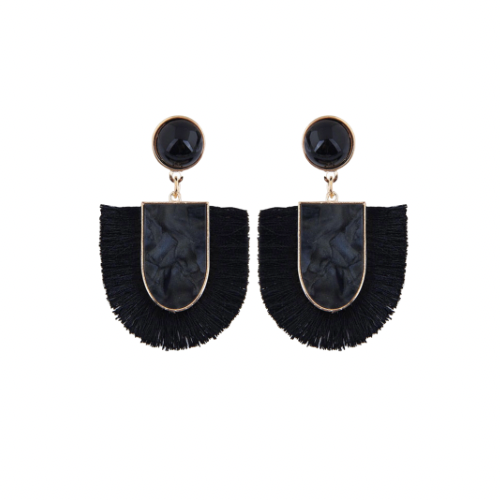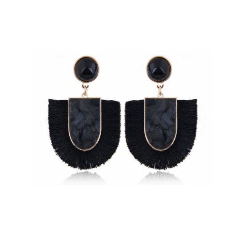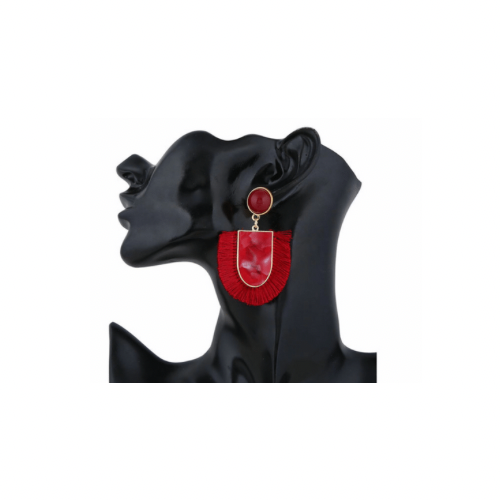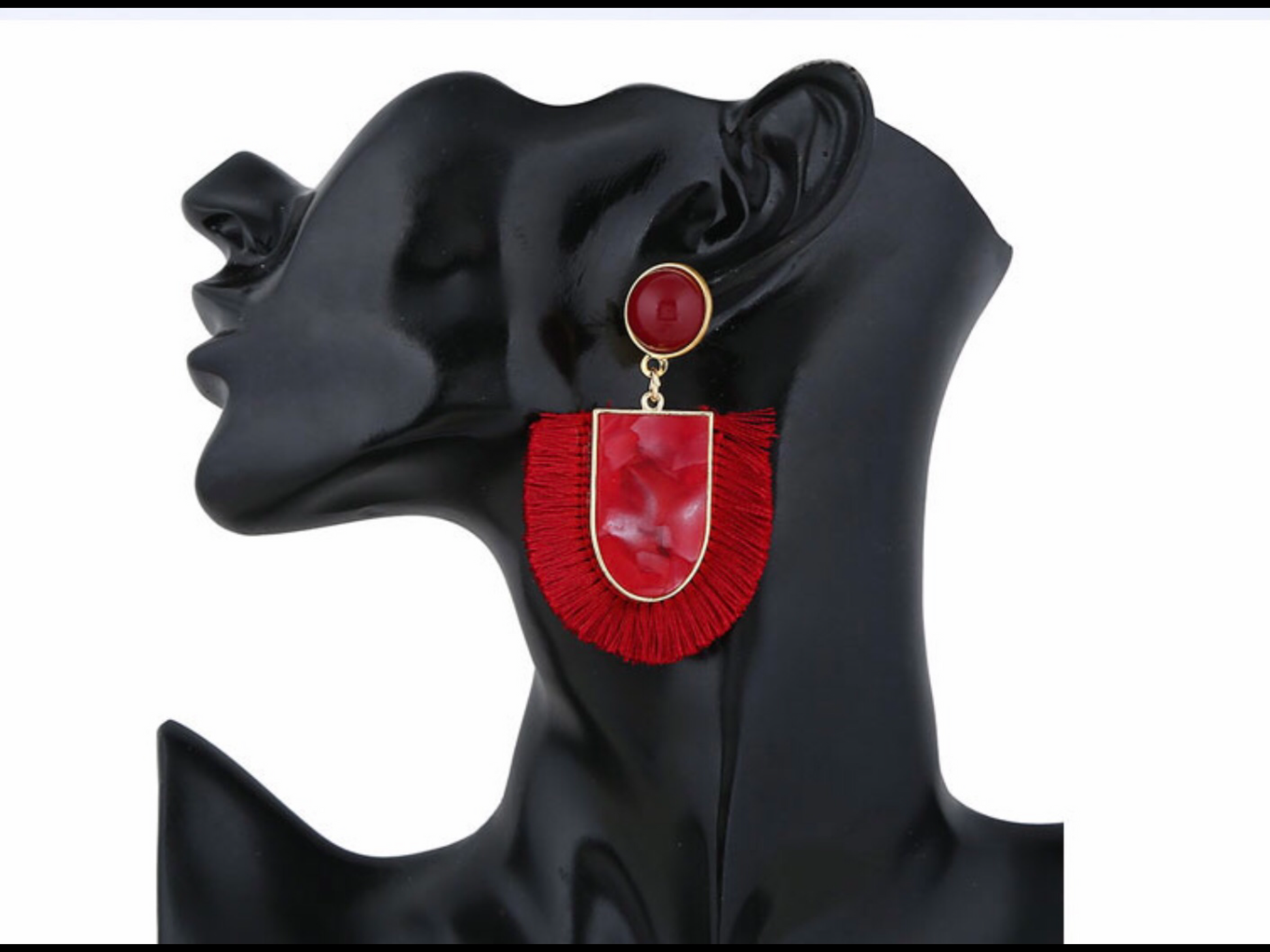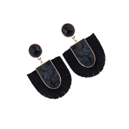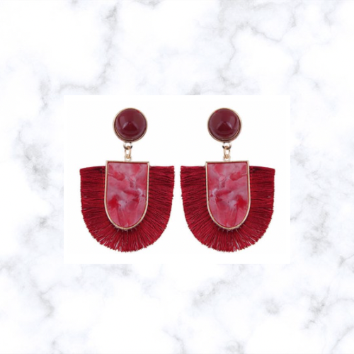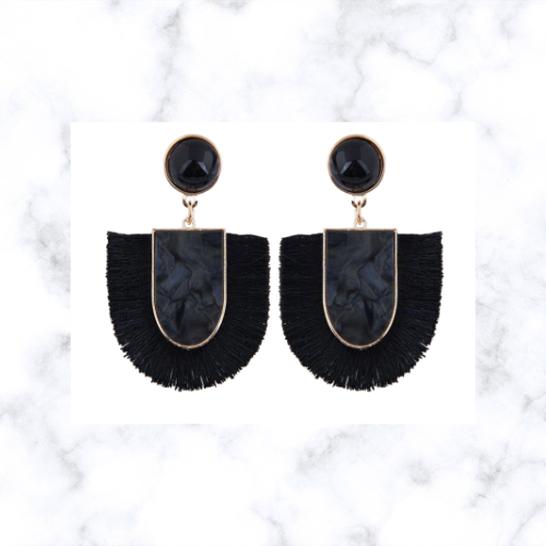 Black Vintage Fringe Drop Earrings! These Black Classic Vibes Will Add A Trendy Touch To Your Outfit! Soft Marble Detail In Center With Soft Fringe Details! Also Available in Red!