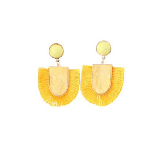 Yellow Vintage Fringe Earrings! These Vintage Classic Sun Vibes Will Add A Stunning Touch To Your Outfit! Soft Marble Detail In Center With Soft Fringe Details!