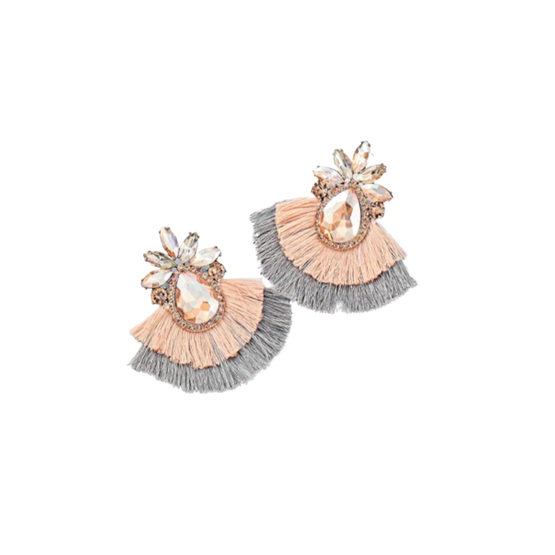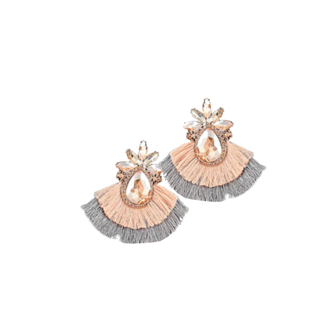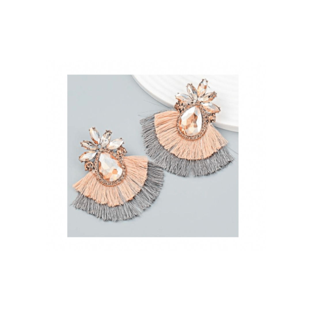 Large Grey Fan Fringe And Gem Drop Earrings! These Big Blue Beauties Will Add A Trendy Touch Of Style To Your Outfit! Soft Fringe Detail And Fabulous Center Gem And Gem Post Details!