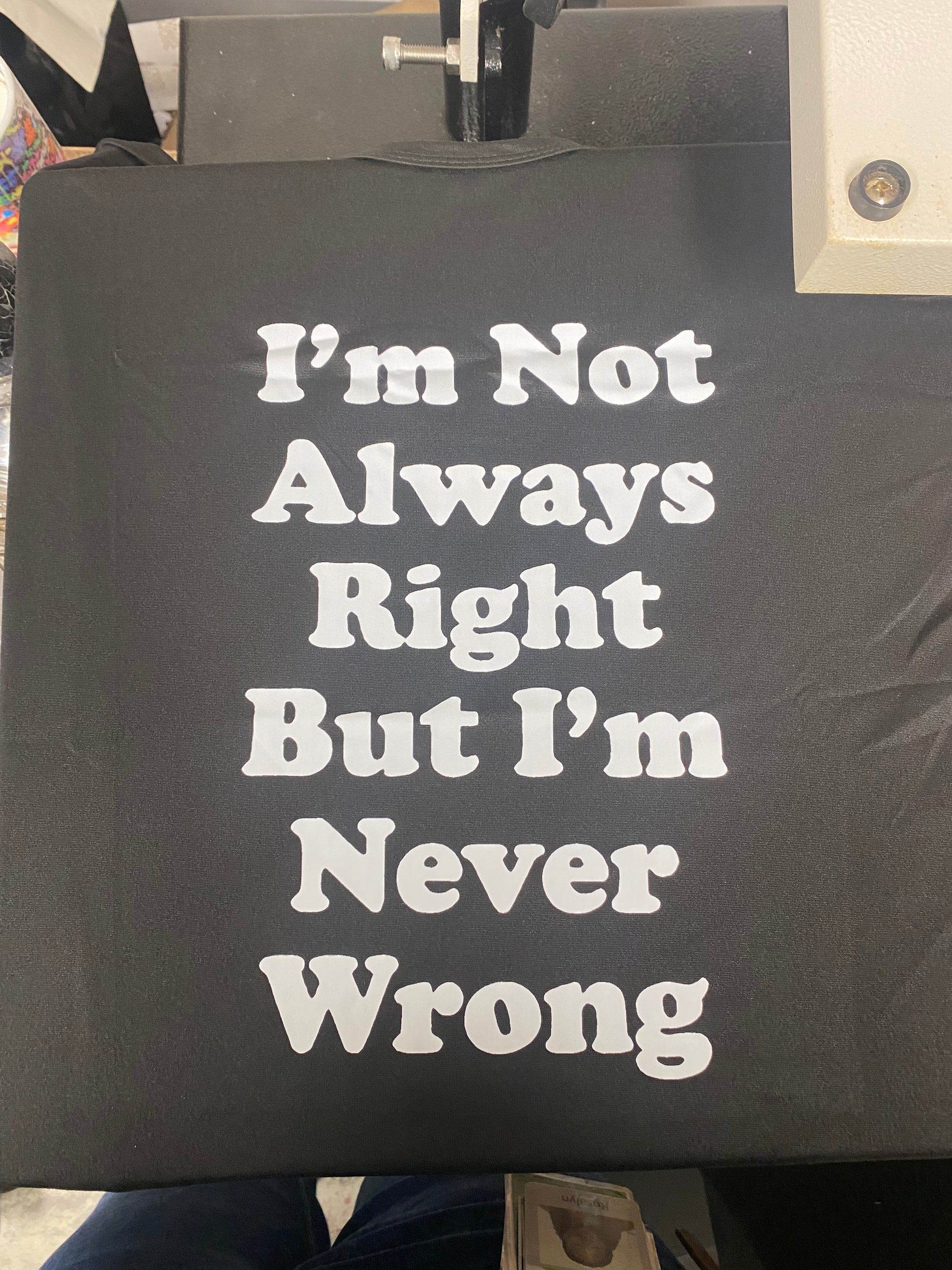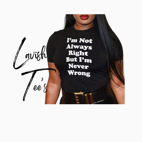 Sometimes You Just Have To Say It With A Shirt! This Black Graphic T-Shirt Is Has A White Quote “I’M NOT ALWAYS RIGHT BUT I’M NEVER WRONG”. Easy To Wear! Pairs Nicely With Our Earrings From The LAVISHLOCKETT Earring Shop!!