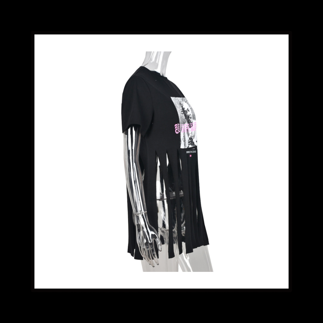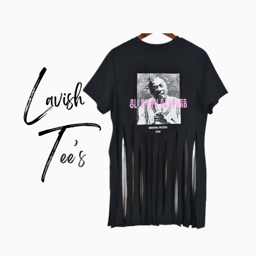 Sometimes You Just Have To Say It With A Shirt! This Black Graphic T-Shirt Has A Photo Transfer Image of ODB In Gray Scale With Pink Writing And Shredded Fringe Bottom. Easy To Wear! Pairs Nicely With Our Earrings From The LAVISHLOCKETT Earring Shop!!