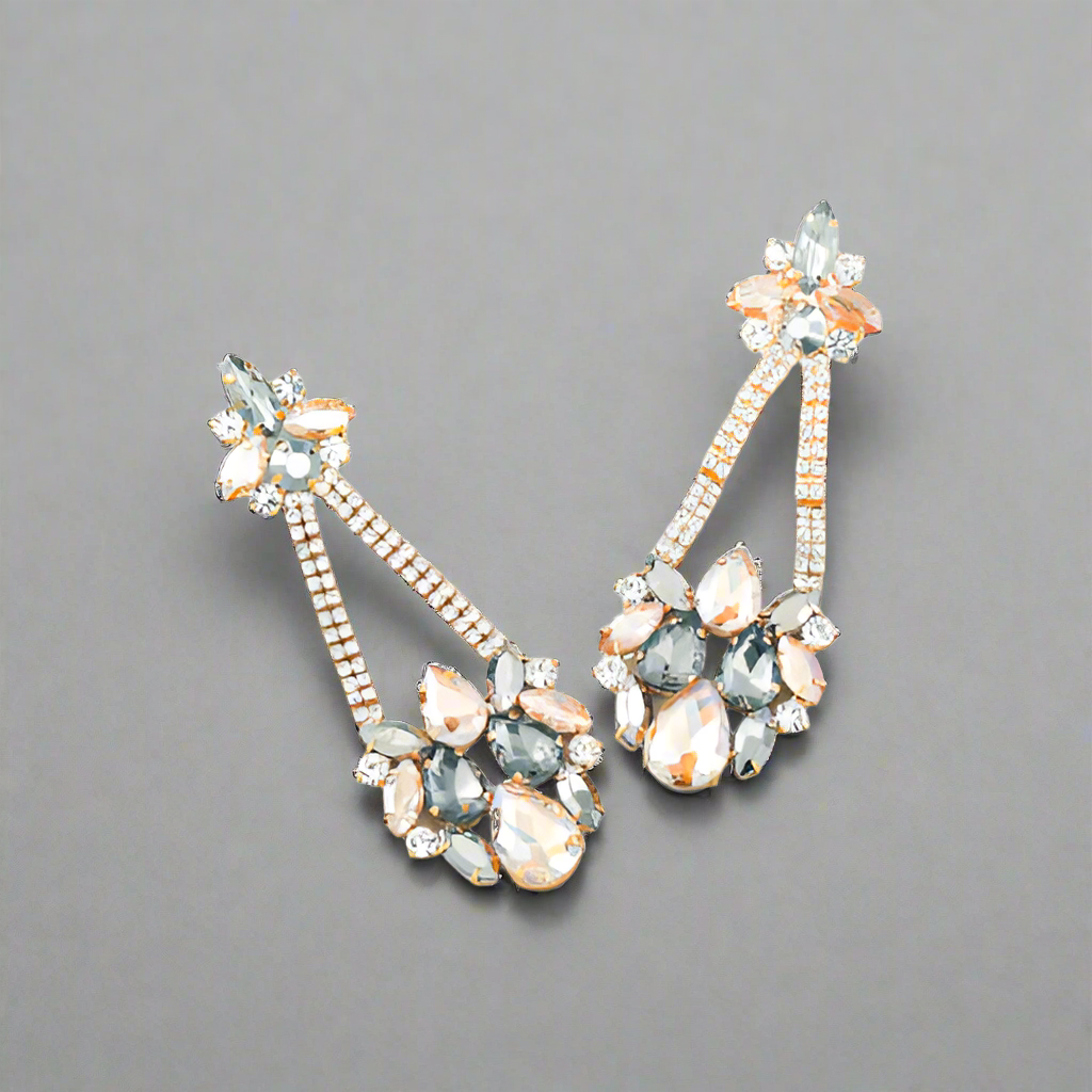 Enjoy every facet of these stunning clear black, gold and diamond gem dangle earrings with gold hardware. These earrings stuns and will elevate your outfits!
