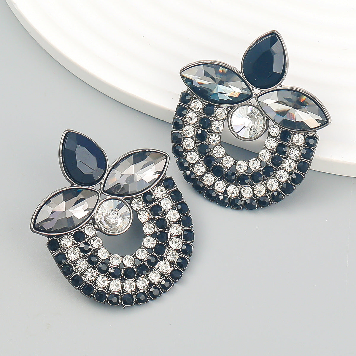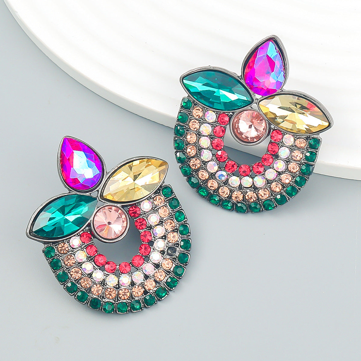 Fashionable statement post earring with bling design. Super trendy and posh!! Comes in Black and Multcolored.