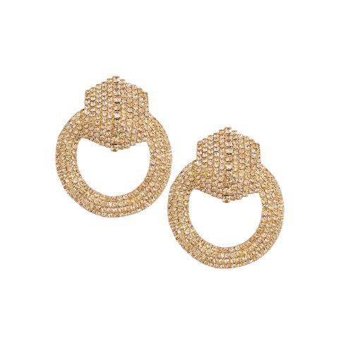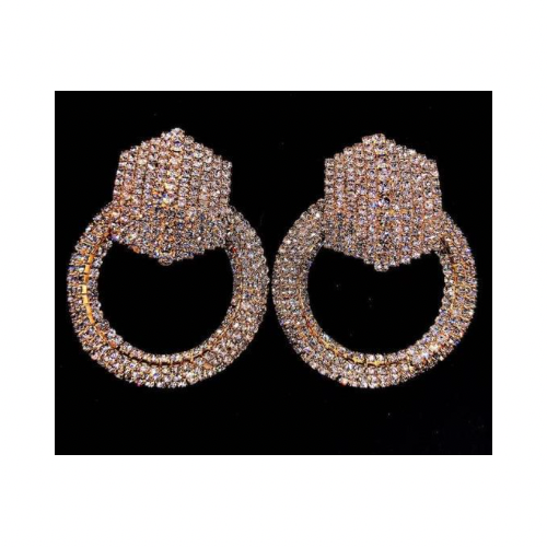 Super Chic Large Gold Round Rhinestone Earrings That Are High Fashion And Formal At The Same Time! Going To See The Prez Or Going Out The Country To A Wedd? You’ll Steal The Show With These Medium Weight Beauties!