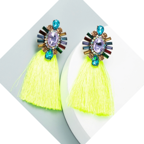 Fun And Flirty! These Lightweight Lovelies Gives A Pop Of Color With These Dazzling Gem Posts And Soft Long Coordinating Fringe. Easy To Wear! Dress Up Or Down With A Trendy Maxi Or Your Favorite Tattered Jeans!