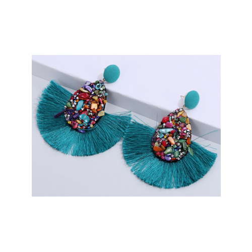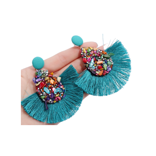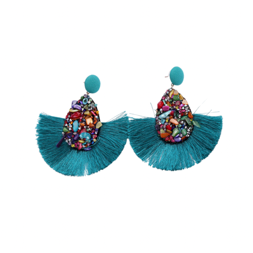 Bmore Teal Fringe Dangle Earrings Are A Party On Your Ears. These Fabulous Clustered Multicolored Beaded Stones And Soft Flirty Fringe is All The Hype!