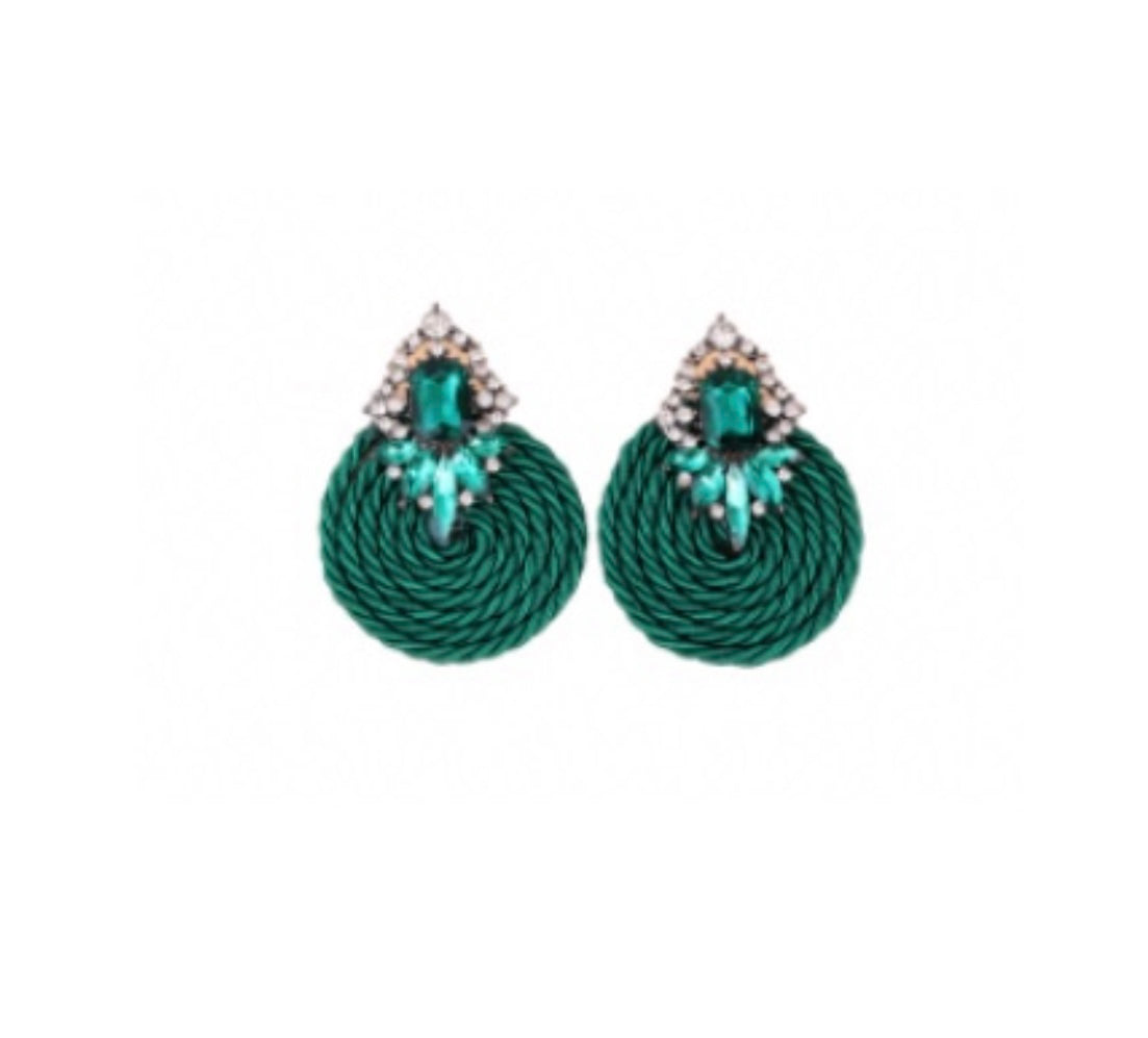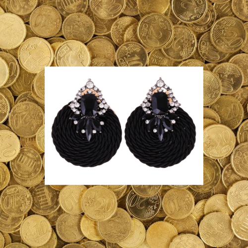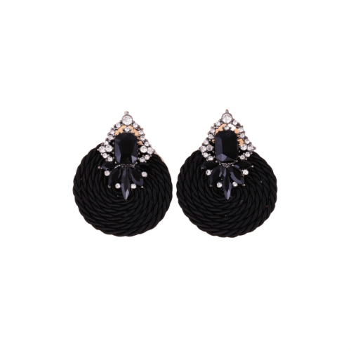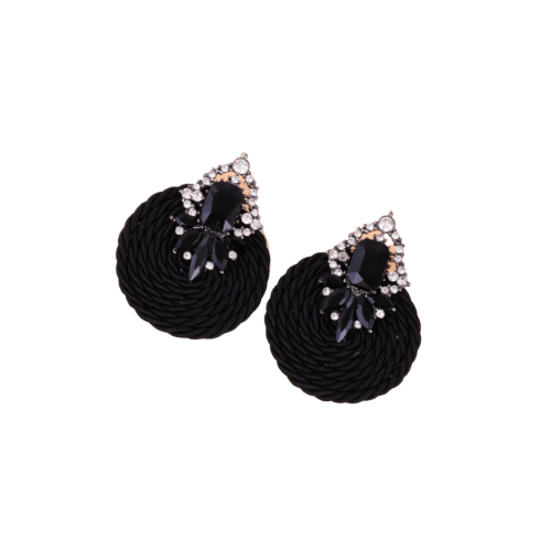 Black Gem And Embroidery Rope Stud Style Earrings. Don’t Get Ted Up Trying To Figure Out What To Wear With These Beauties!