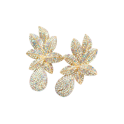 Everything That Glitters Ain’t Gold! But These Floral Shaped Dazzling Gems Are A Sparkling Treat! Enjoy These Fully Covered Leafy Gemstones With Large Center Gem Make These The Perfect Statement Earrings.