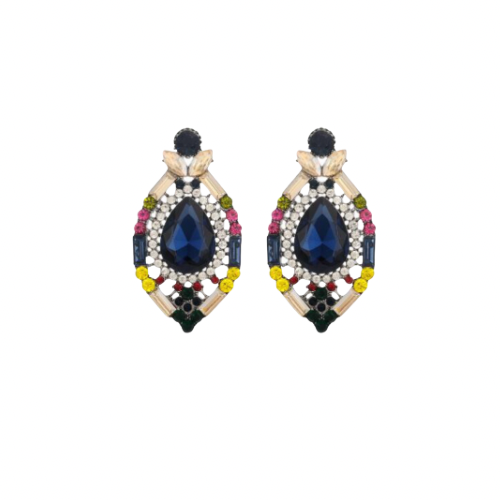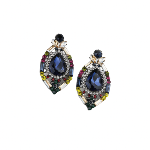 Bold Multicolored Gem Drop Earrings With A Dazzling Blue Center Gem And Multicolored Gems Surrounding These Stunning Earrings. Easy To Wear! Medium Weight.