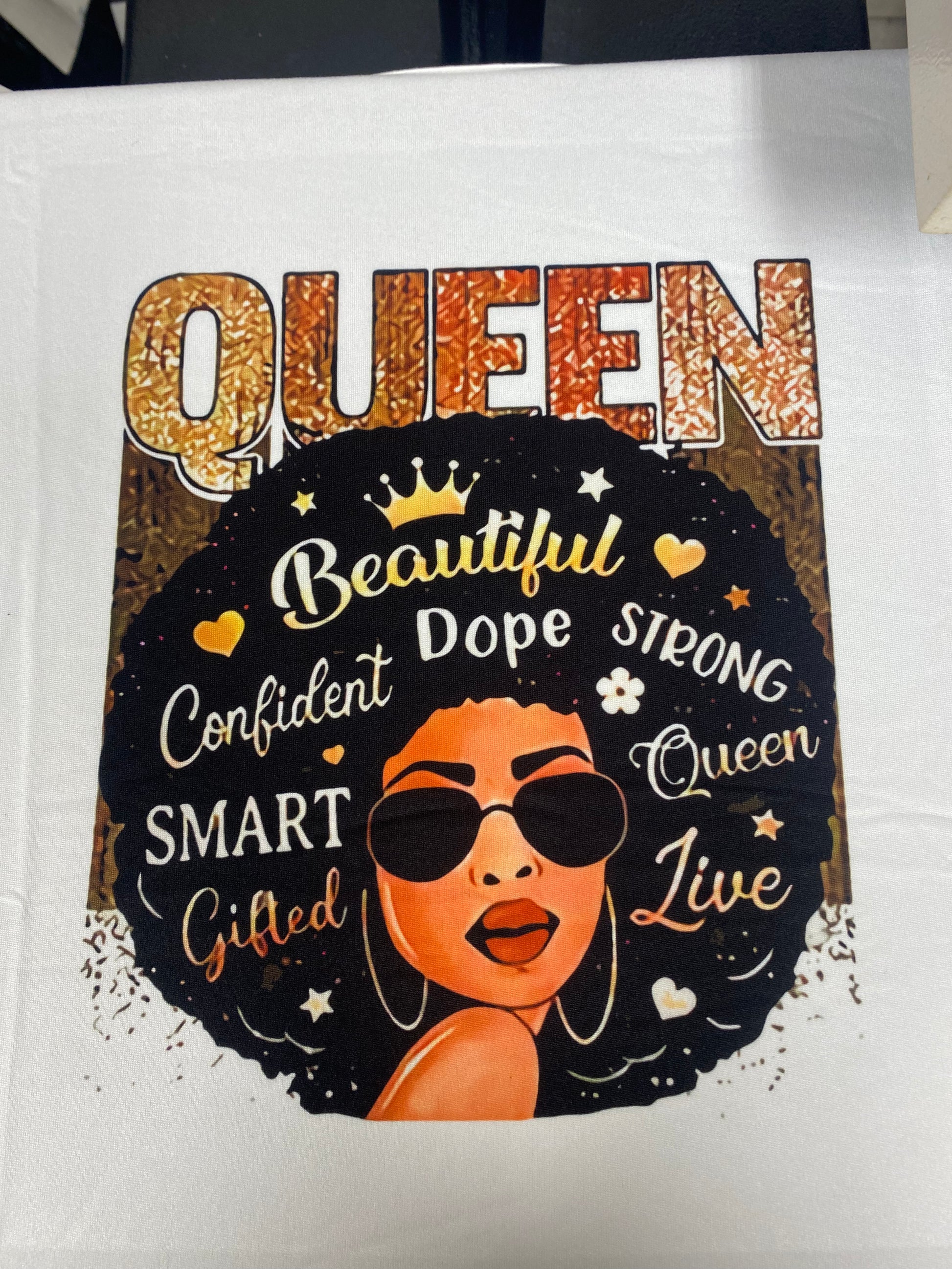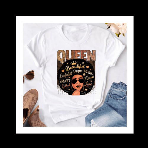 Sometimes You Just Have To Say It With A Shirt! This White Graphic T-Shirt Has Warm Brown Colored Affirming Words Within A Large Afro On A Brown Women Wearing Shades! Easy To Wear! Pairs Nicely With Our Earrings From The LAVISHLOCKETT Earring Shop!!