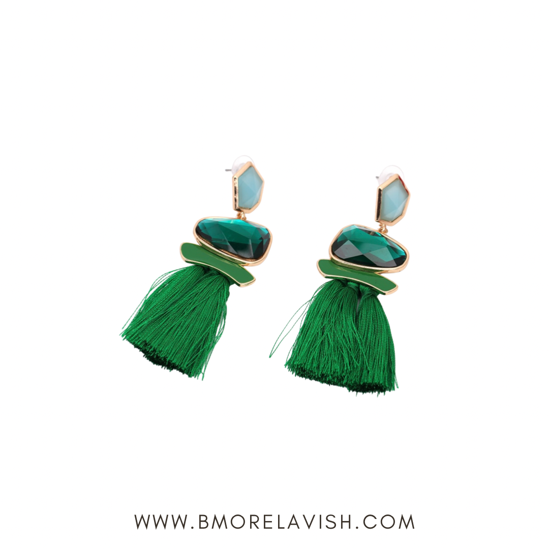 Uptown Diva Green Earrings Are Funky But Chic! Light to Medium Weight! Prefect For That Night On The Town! Teal Stone Detail With Green Accent!